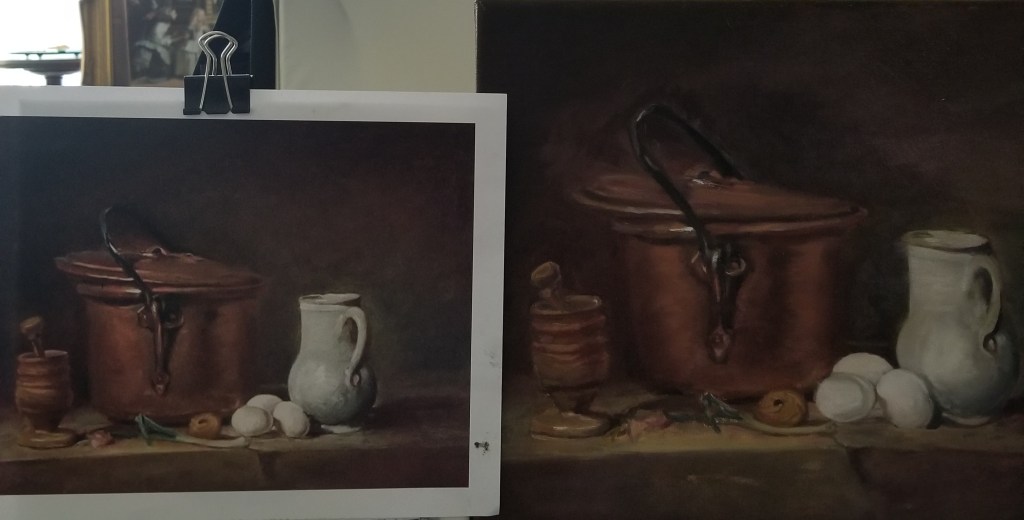 Chardin still life Progress 4 Chardin still life progress 5 Compared Share this:Tweet Print (Opens in new window) Print Share on Reddit (Opens in new window) Reddit Pocket Share on Telegram (Opens in new window) Telegram Like Loading...